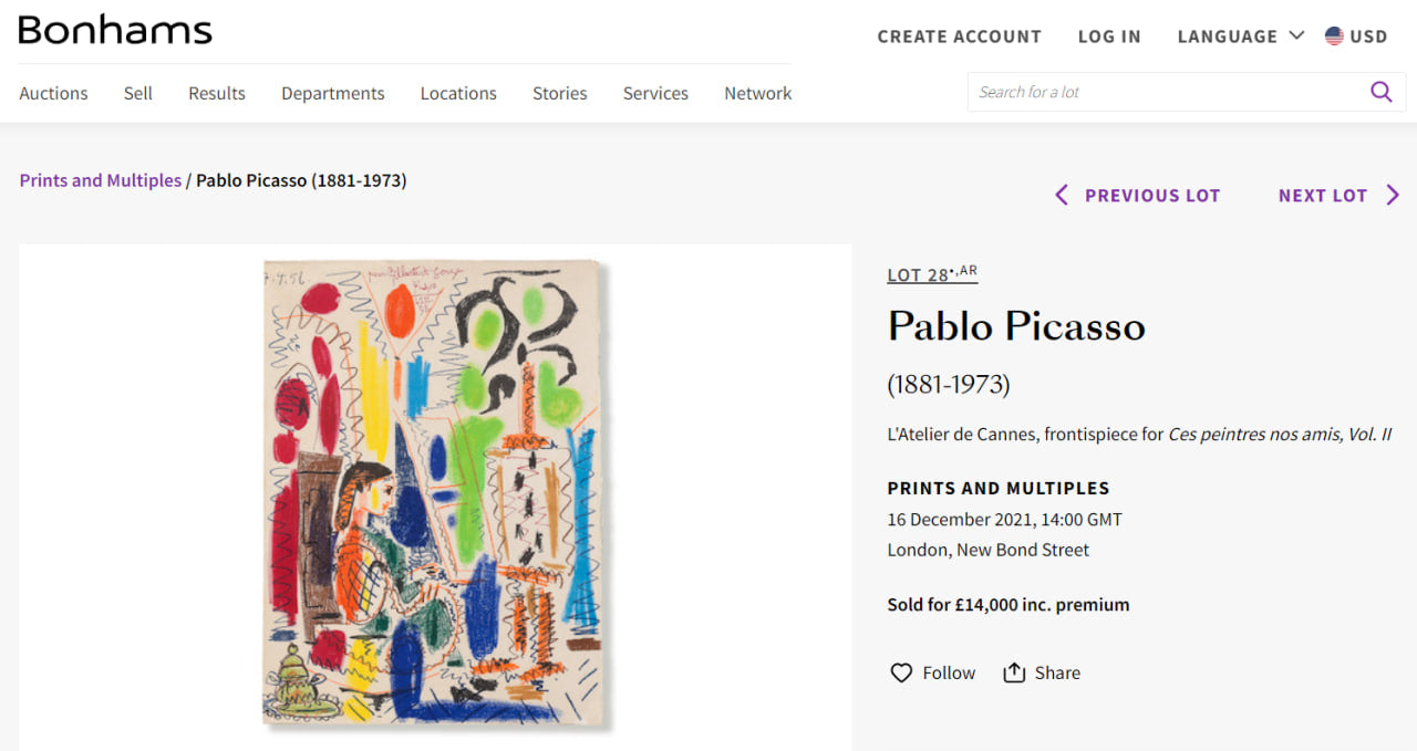 The same lithograph was sold at Bonhams for £14,000 (16 December 2021, Lot 28).