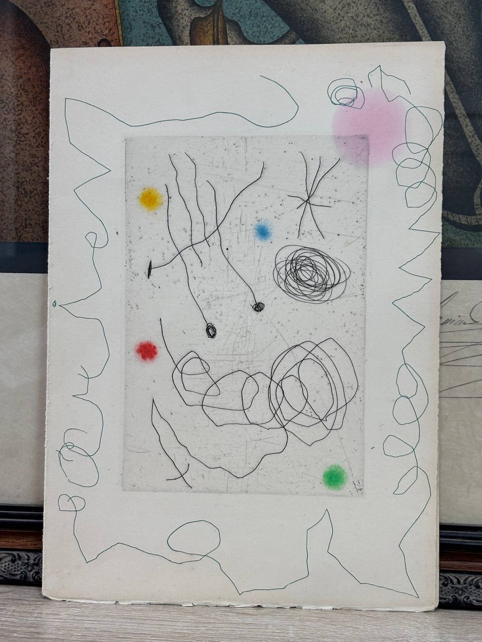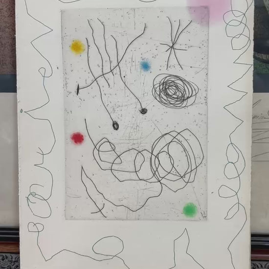 Original Joan Miró drypoint etching and aquatint in colors "La chouette et l’escargot" (The Owl and the Snail), 1964