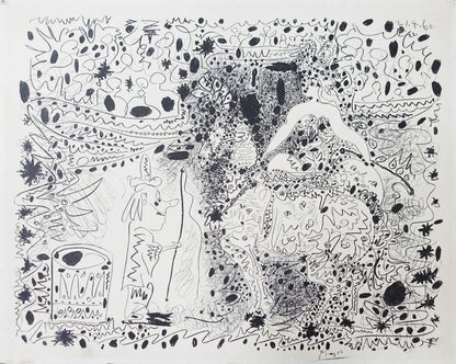 This striking black-and-white lithograph by Pablo Picasso, titled L’Écuyère (The Horsewoman, Scène de cirque), was created on April 21–22, 1960, and belongs to the artist’s celebrated circus-themed series. L’Écuyère was published by the newspaper Le Patriote in Nice, France.