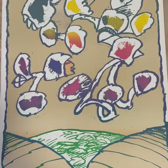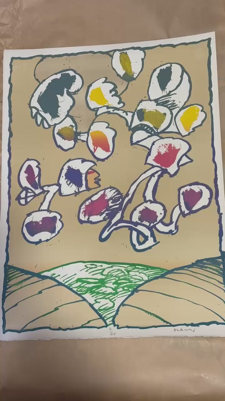 A striking and poetic composition by Pierre Alechinsky — a founding member of the CoBrA movement and a key figure in post-war European avant-garde. Paris Flying Objects captures Alechinsky’s distinctive visual language: a dynamic interplay of whimsical, biomorphic forms suspended above a textured landscape, rendered in vibrant colors and gestural linework.