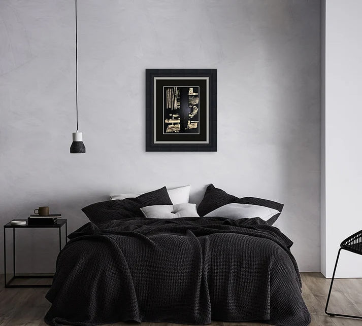 The composition is defined by a striking dialogue between deep black passages and luminous white space. Subtle variations in texture and pressure introduce movement and depth, transforming the surface into a dynamic field of visual tension. This work anticipates the artist’s later development of outrenoir, where black becomes not a color, but a medium for light itself.